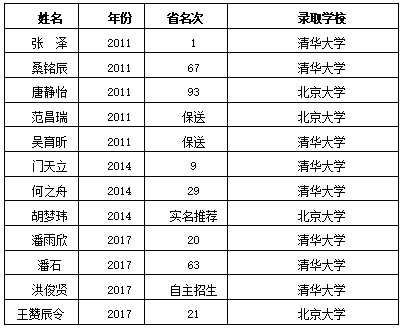 附:郑可根亲自带班,近三届培养的清华大学和北京大学的学生: